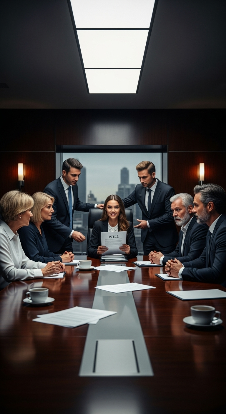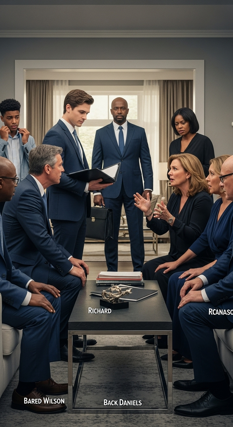 A következő nap mint várva várt hívás megérkezett: a családi gyűlés. Ott ültem a nappaliban kezembe véve a bizonyítékokkal teli portfóliót, készen arra, hogy leleplezzem a kísérletet, amelyben ügyvédek próbáltak pályázni a vagyonomra, miközben Charles Henderson érkezett, hogy megvédje a valódiságot.