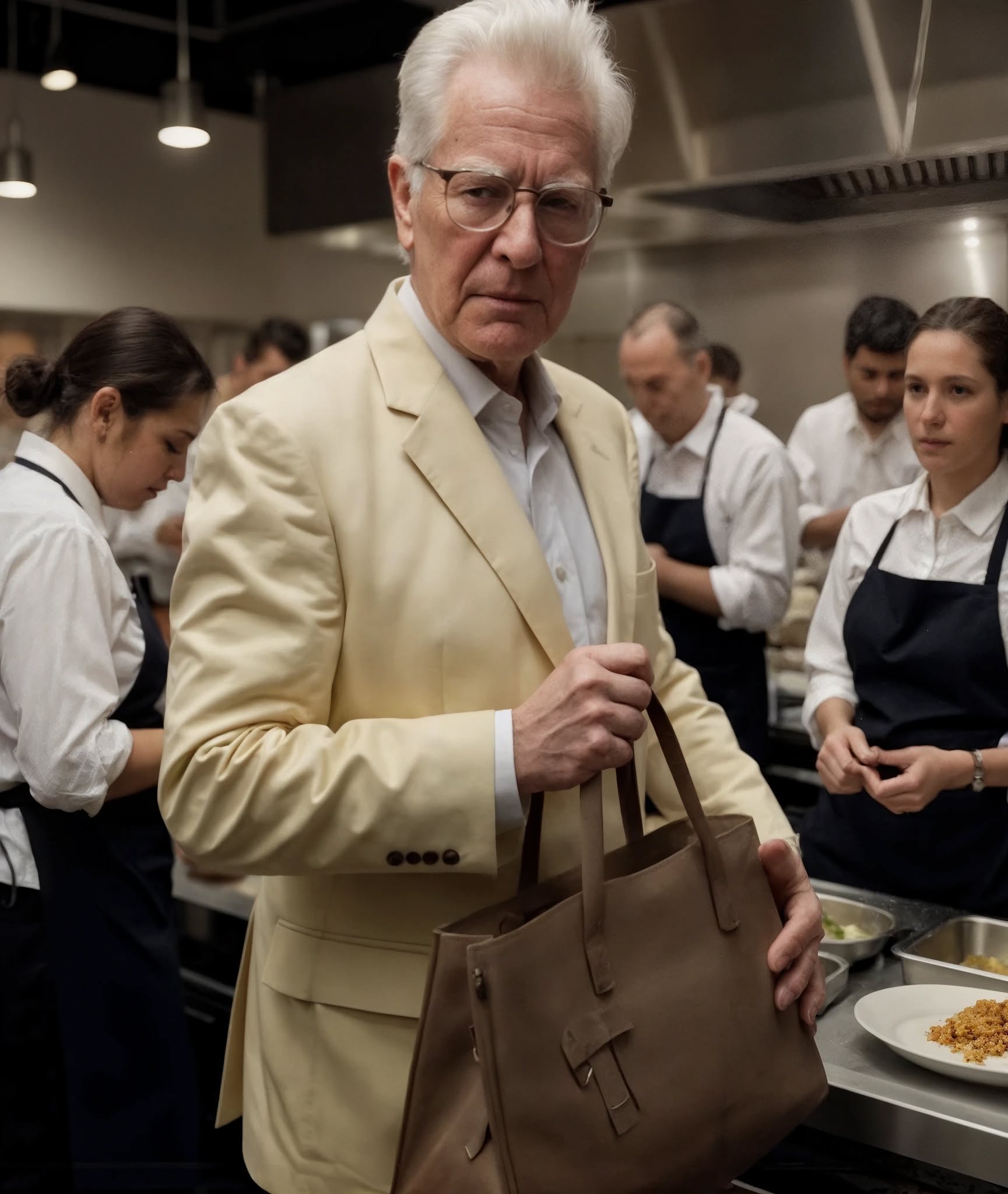 „Mit rejtegetsz abban a táskában? Ételrablás? Tisztítószerek? Vendégmaradékok?” – vádolta. „Azonnal el vagy bocsátva!”