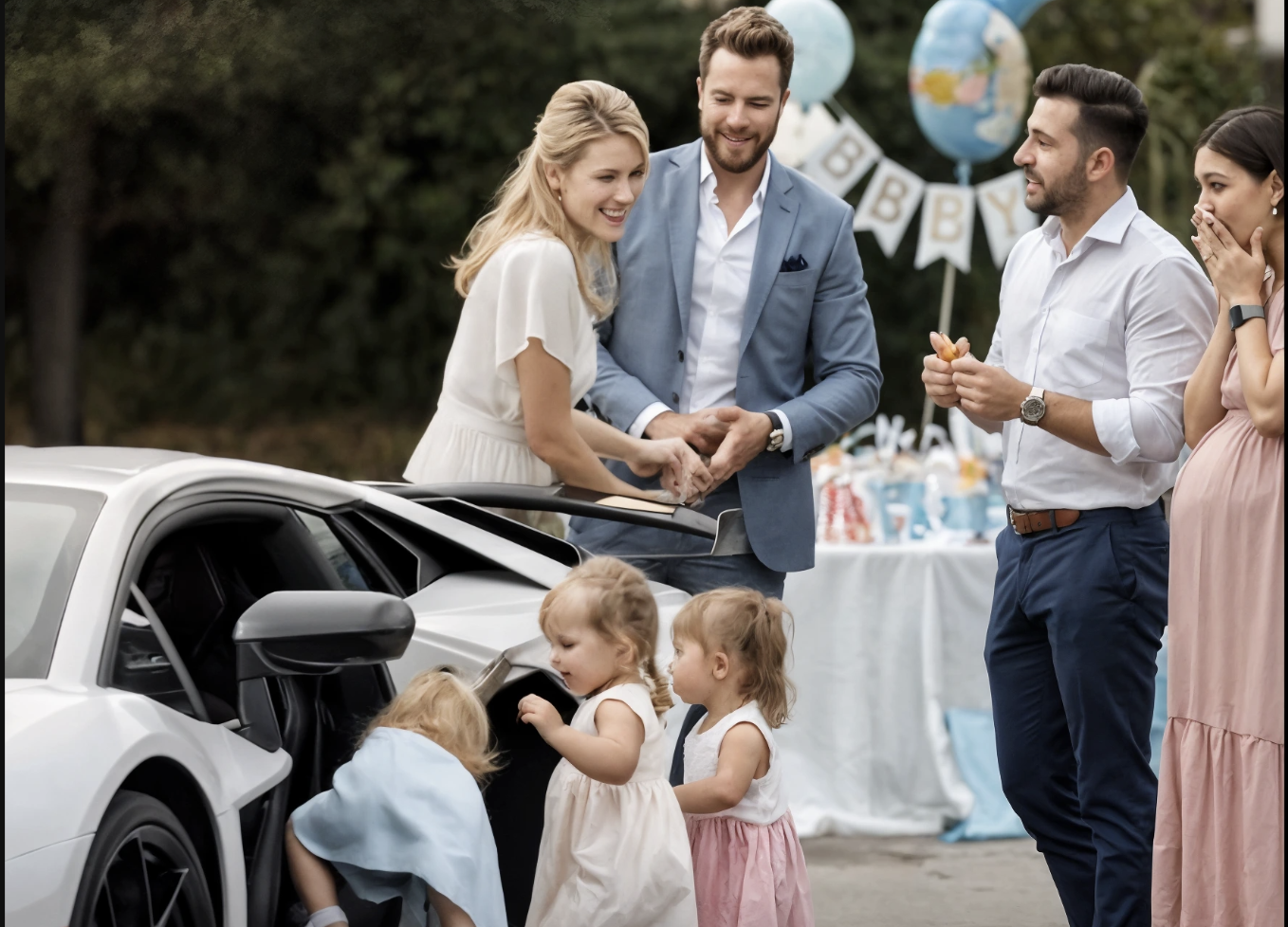 A szavak a levegőben lebegtek, tiszták és élesek, és a napfényes kertben egyszerre elhallgattak a beszélgetések. Megnéztem, ahogy exférjem arca elváltozott, míg új felesége — aki nagyon várandós — sürgősen az ölébe kapaszkodott, mintha az élete múlna rajta. Az a férfi, aki két évvel ezelőtt elém dobta a válókeresetet, azt mondva, hogy „hibás árucikk” vagyok, mert nem tudtam neki gyereket adni. Most mereven állt, míg négy apróság ugrált ki egy mögöttem álló fehér Lamborghiniből.